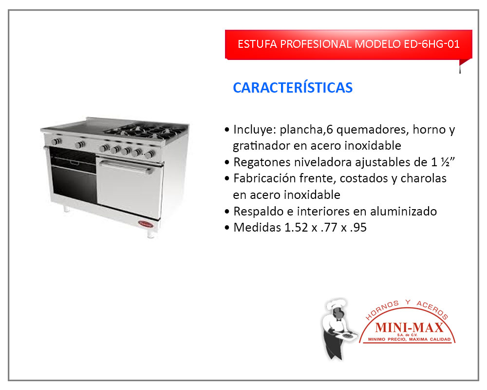 Estufa Profesional Modelo ED-6HG-01