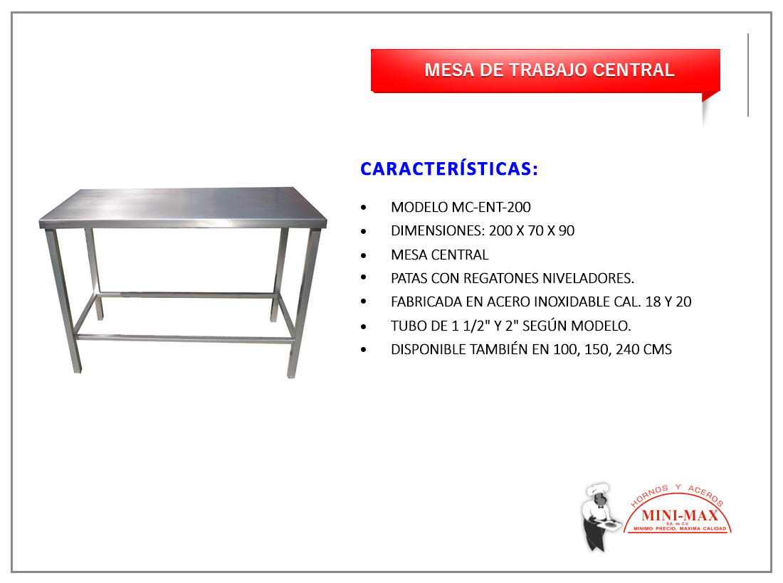 Mesa De Trabajo Central Tipo – Isla Y Entrepaño