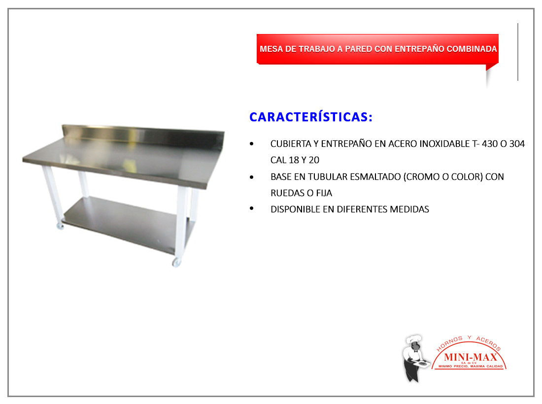 Mesa De Trabajo A Pared Con Entrepaño Combinada