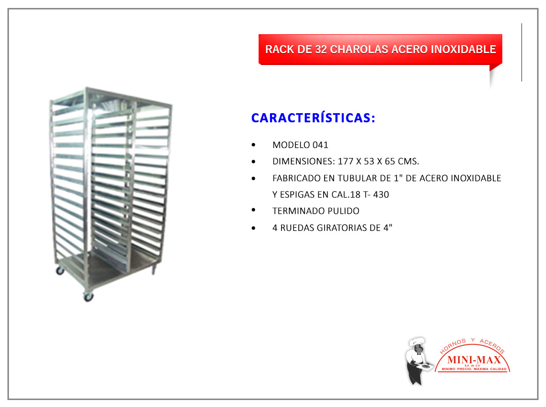 Rack De 32 Charolas Acero Inoxidable