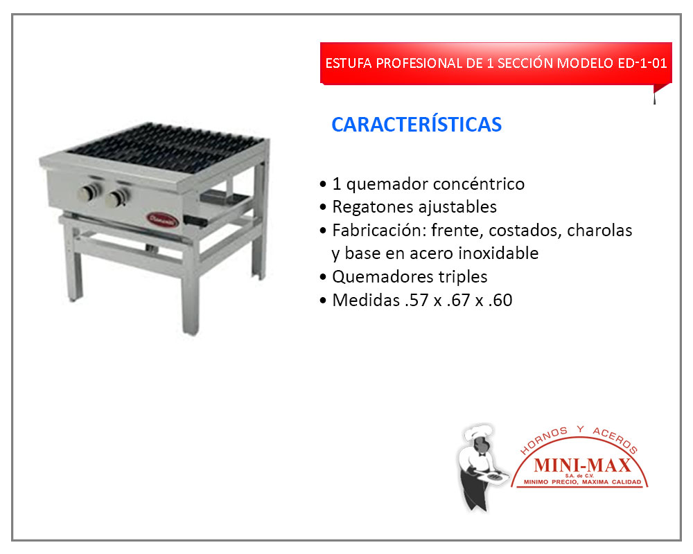 Estufa Profesional De 1 Sección Modelo ED-1-01