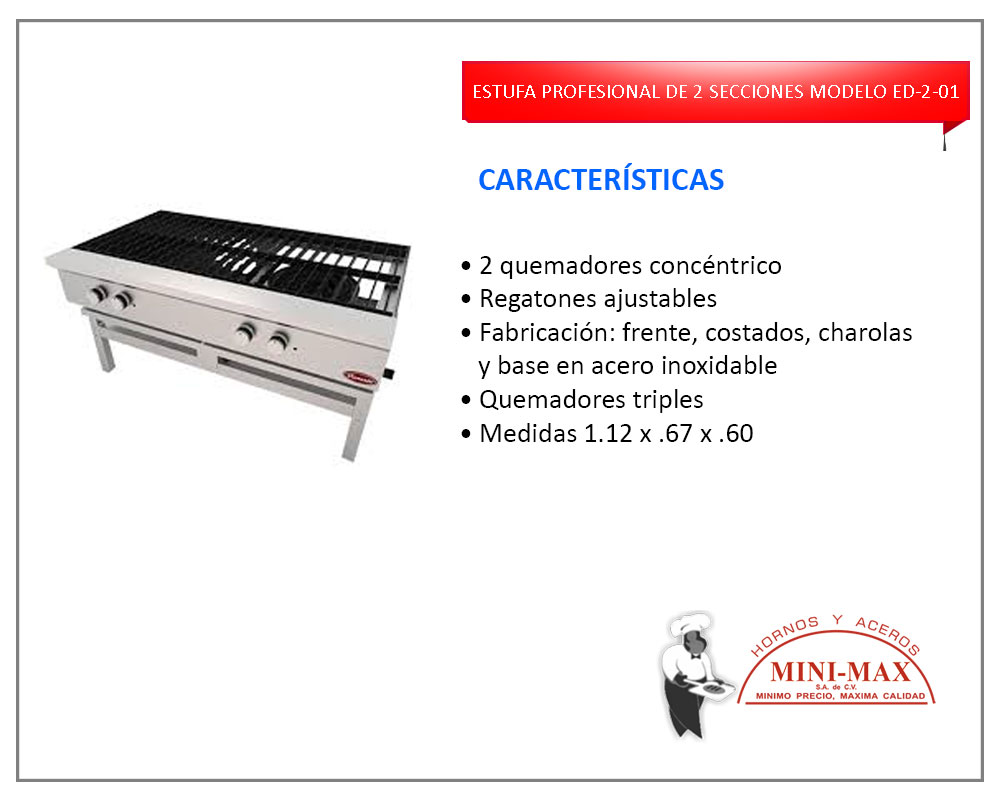 Estufa Profesional De 2 Secciones Modelo ED-2-01