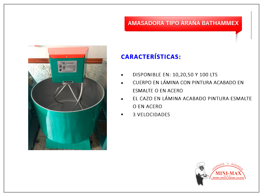 Amasadora Tipo Araña Bathammex 10,20,50 Y 100 Lts