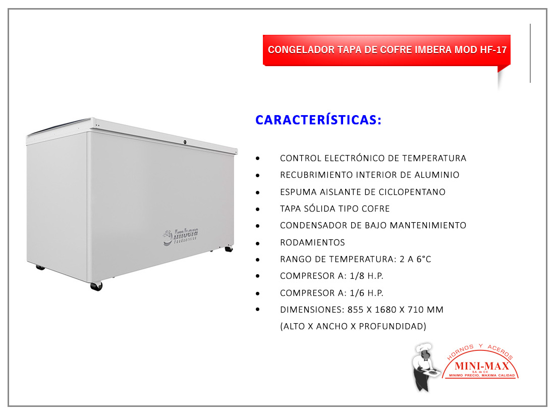 Congelador Tapa De Cofre IMBERA MOD HF-17