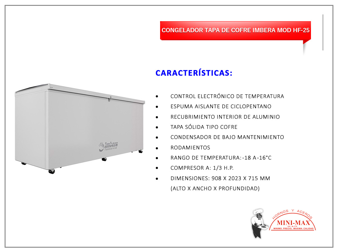 Congelador Tapa De Cofre IMBERA MOD HF-25